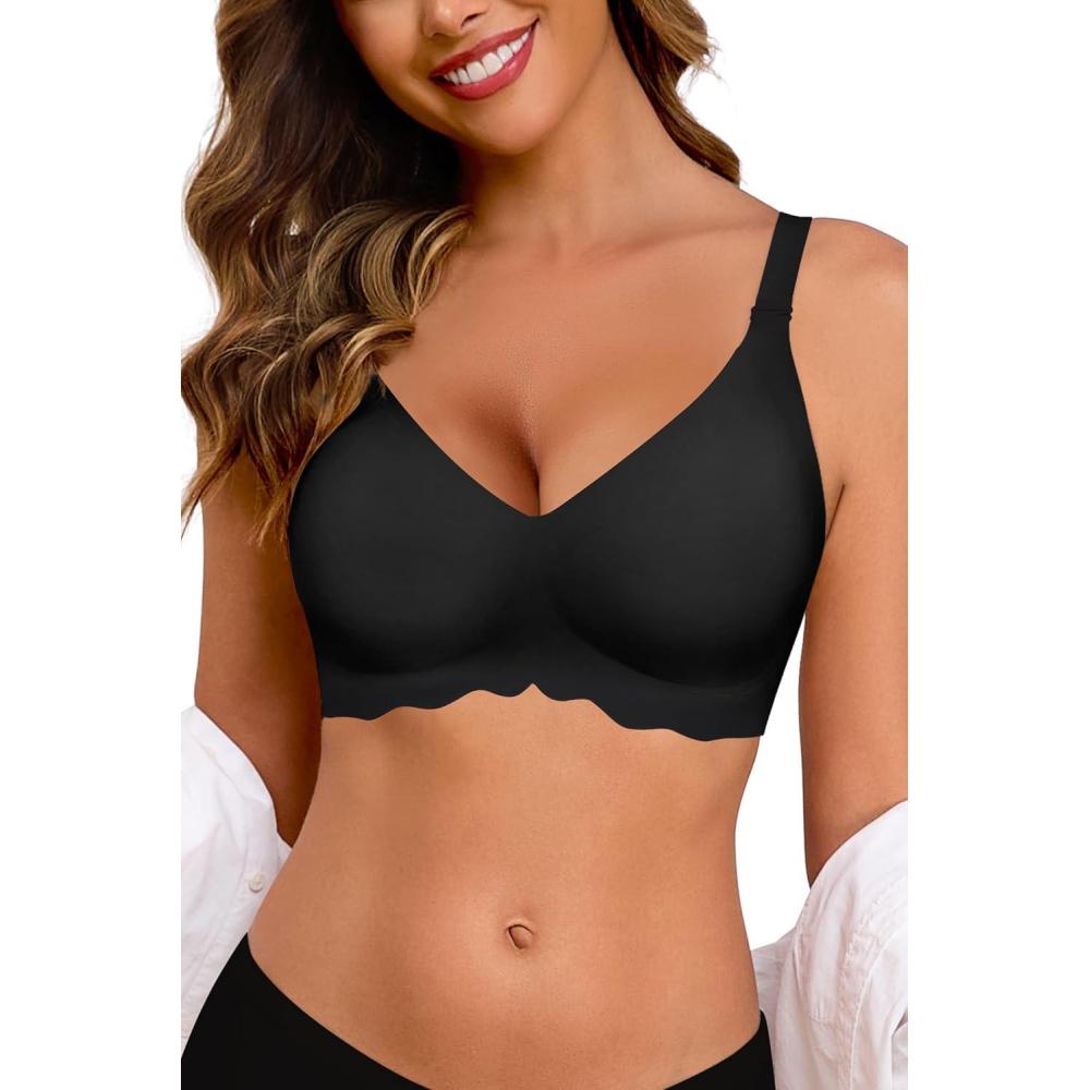 HORISUN Comfortable Wireless T Shirt Bra Seamless Push Up Full Coverage Bras for Women(Black)