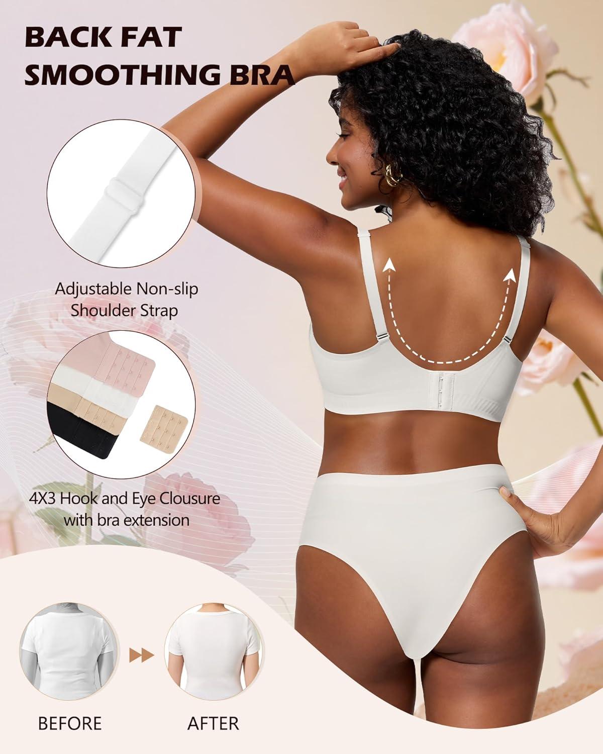 U shape back: back fat smoothing bra; 4X3 hooks and eyes clousure