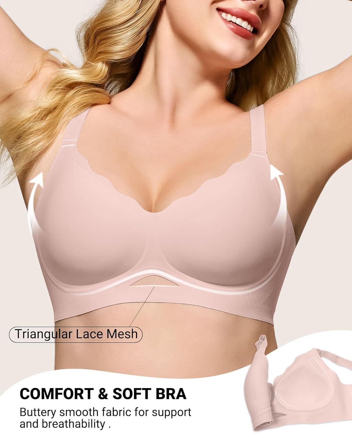 imageHORISUN No Underwire Bras for Women Push Up Scalloped V Neck Wireless Full Coverage Bralette Supportive Comfort Everyday BrasPink