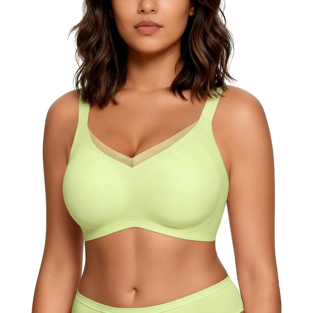 HORISUN Seamless Mesh Lace Bras for Women No Underwire Wireless Bras with Support and Lift Full Coverage Deep V Bralettes(Lemon Green)