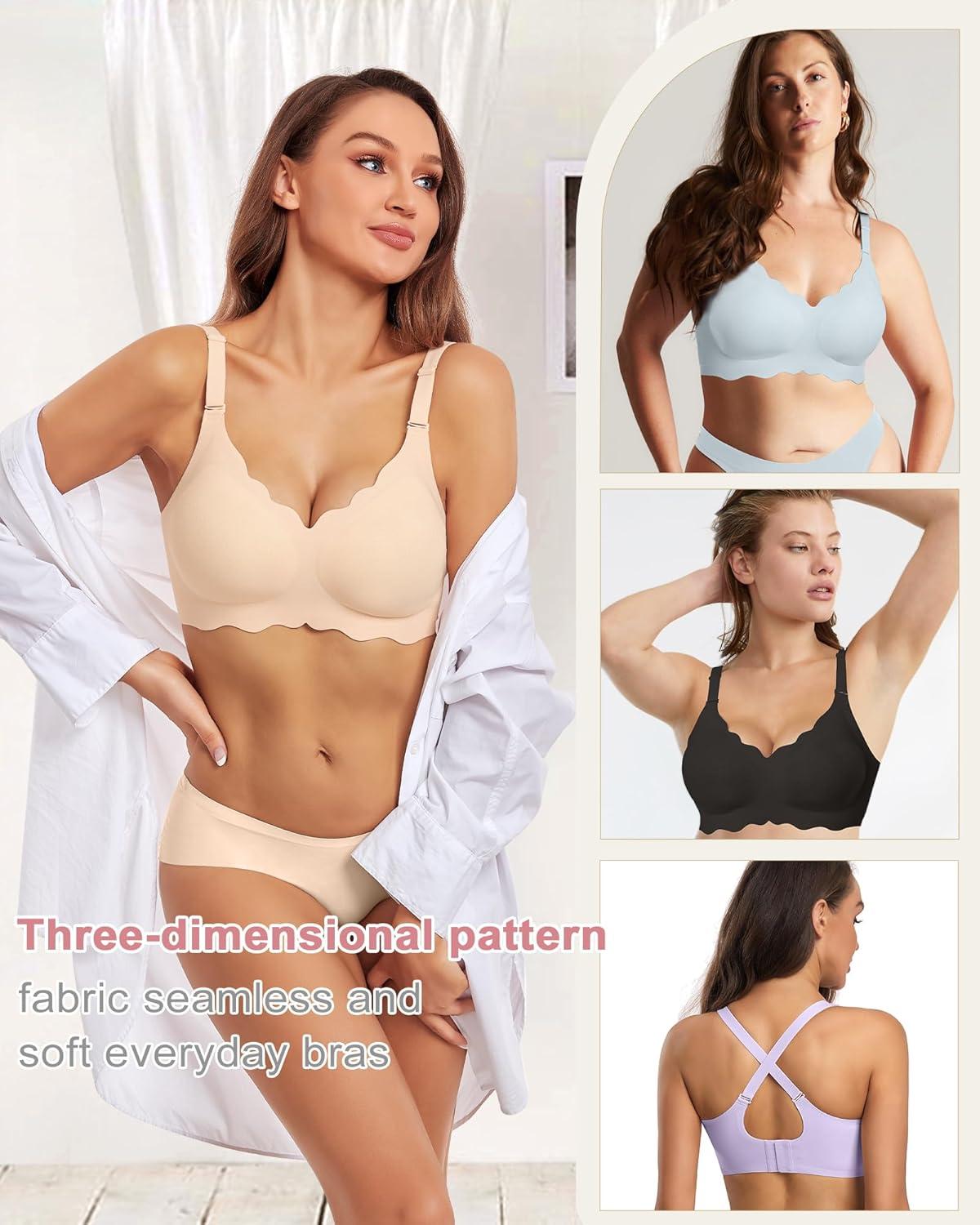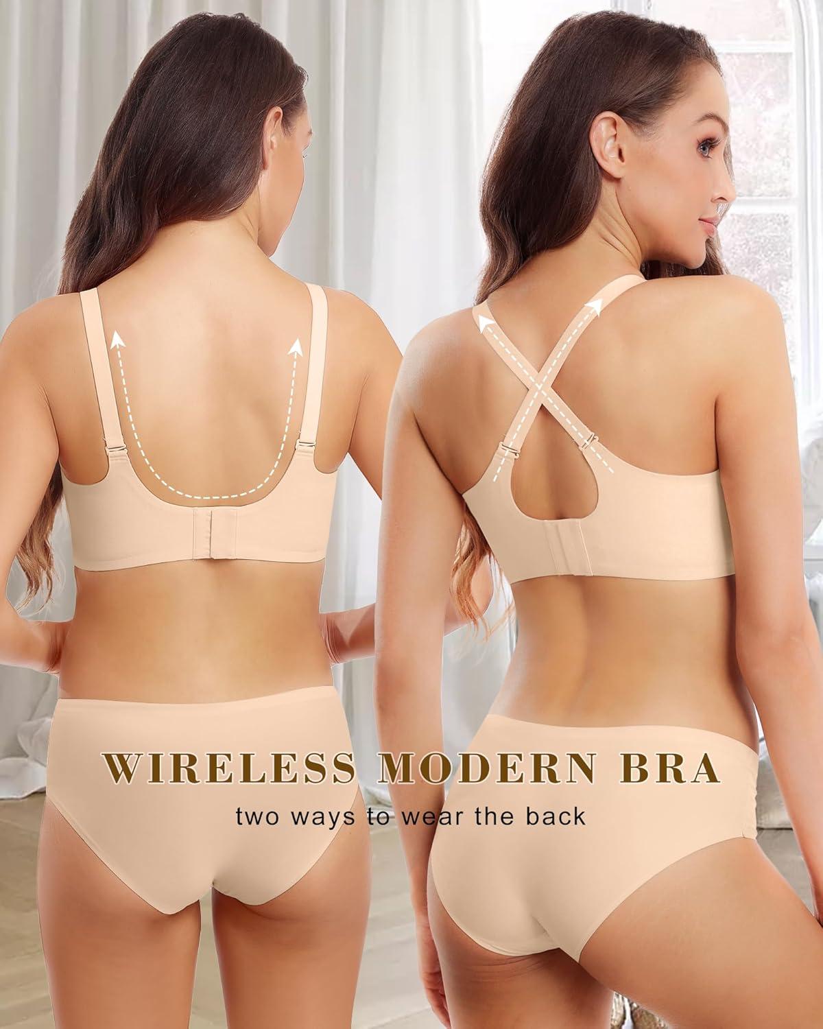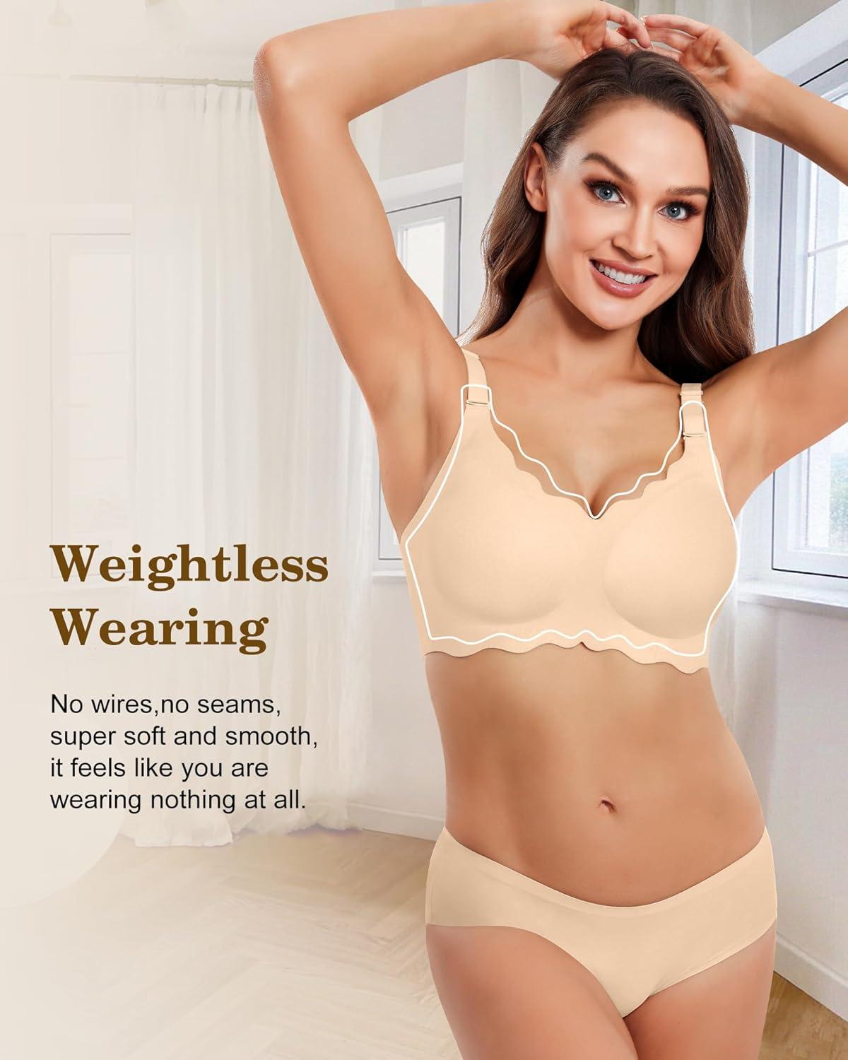 HORISUN Bras for Women No Underwire Wireless Seamless Wirefree Support Lift Full Coverage Push Up T Shirt Bra