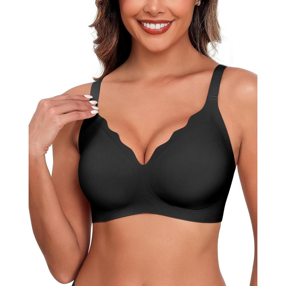 HORISUN Womens Wireless Comfortable Bra Seamless Bras No Underwire Push Up Deep V Scalloped Bralettes with Support(Black)