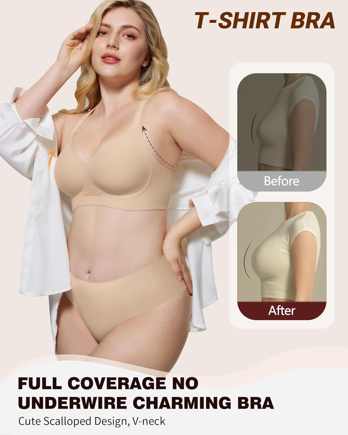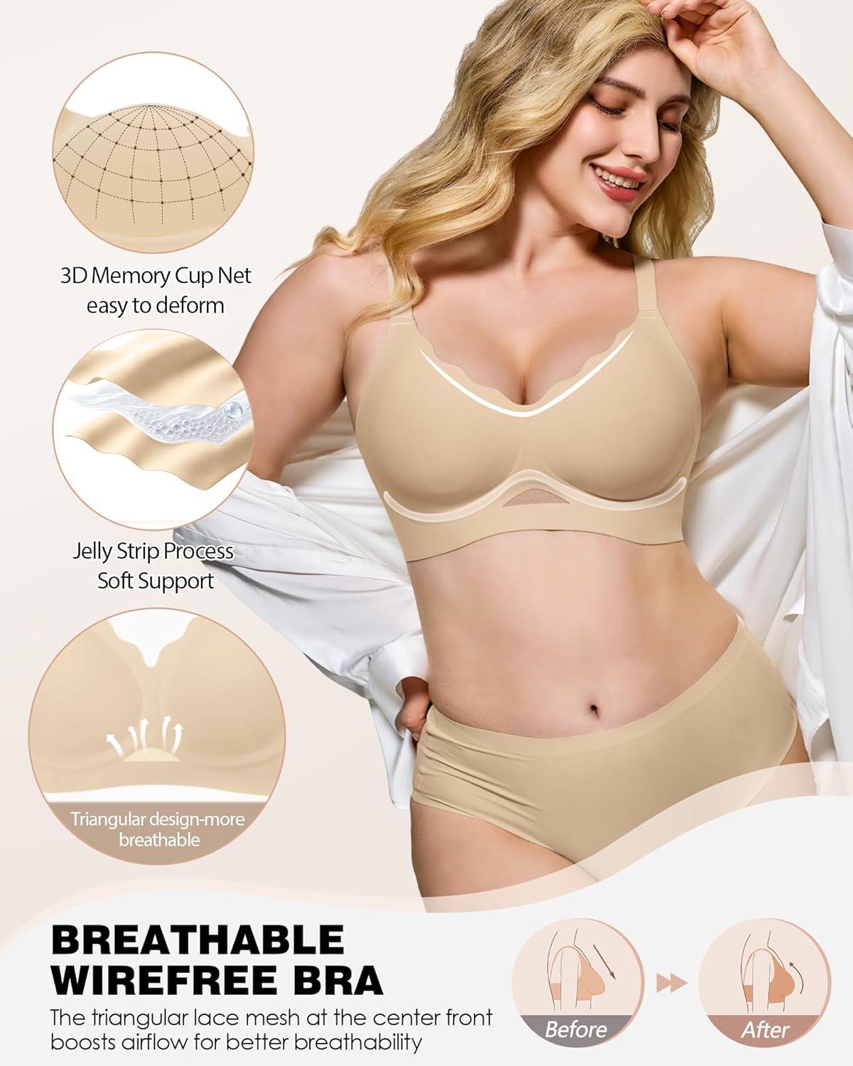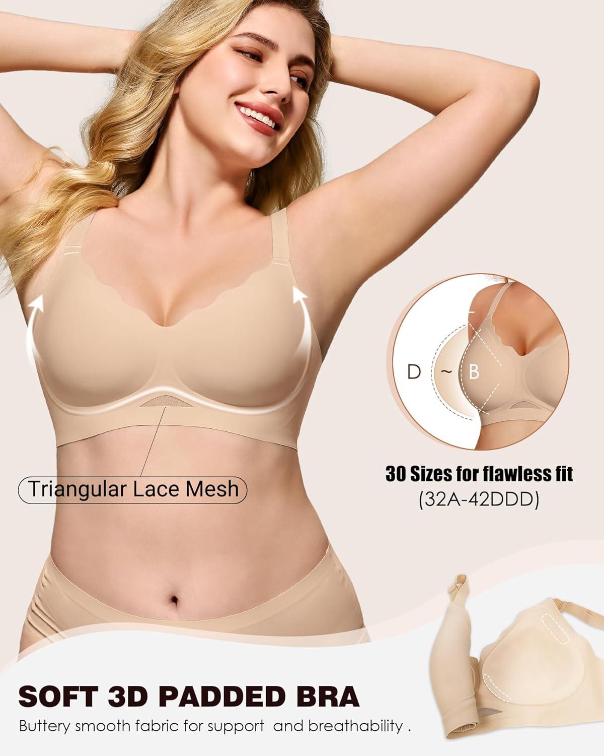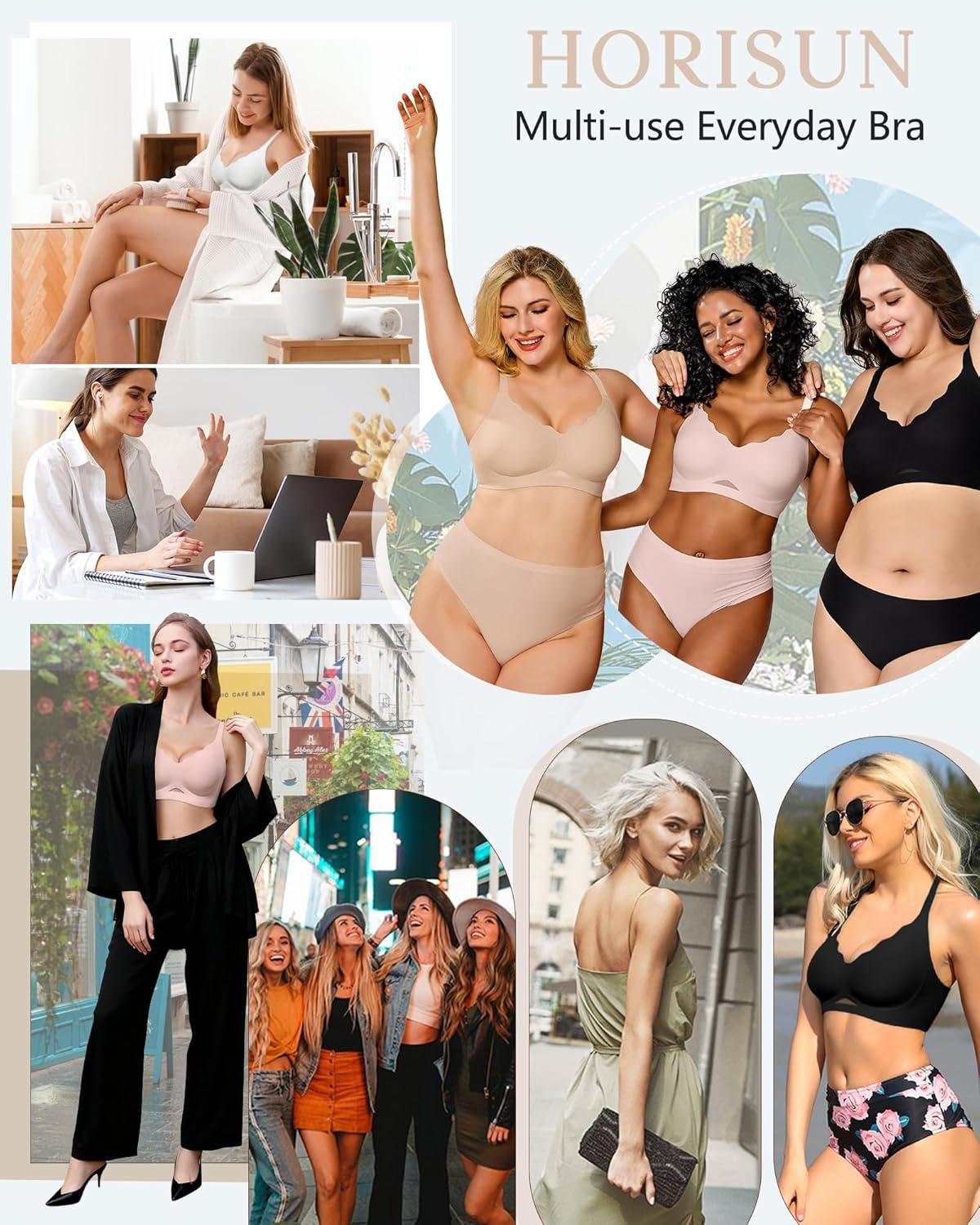 HORISUN Women’s Wireless Push Up Bralette – No Underwire Scalloped V-Neck Full Coverage Soft Support Bra(Skin)